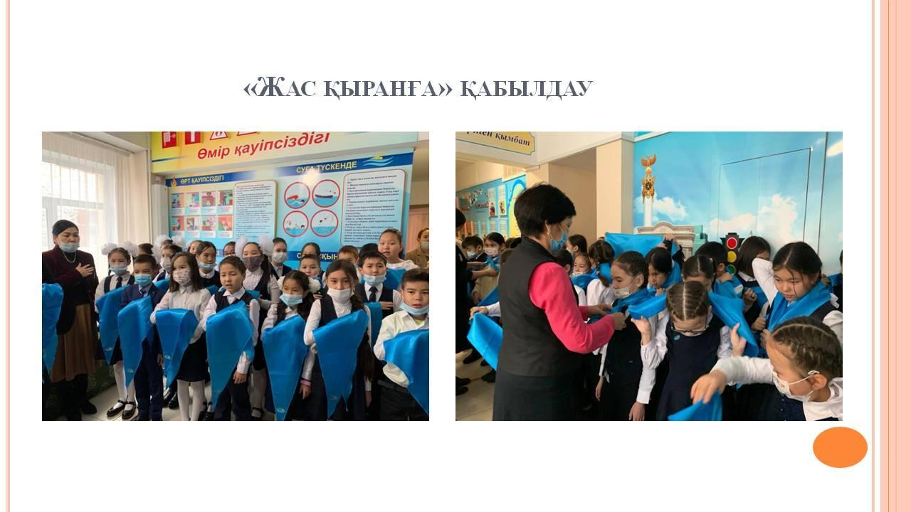 Гимназиямыздың 5-сынып оқушыларын Республикалық бірыңғай «Жас ұлан» балалар мен жасөспірімдер ұйымына қабылдау өтілді. Аталмыш іс-шараның мақсаты: өскелең жас ұрпақтың бойында патриоттық, білім мен өзін-өзі жетілдіруге деген құштарлық,беріктік, Отан тарихына, Тәуелсіз Қазақстанның бүгіні мен болашағына деген жауапкершілікке тәрбиелеу. Бұл қасиеттер әрбір баланың бойында мектеп қабырғасында қалыптасатыны сөзсіз. 5-сыныптарды «Жас ұлан» қатарына қабылдай отырып, олардың міндеттері мен жауапкершіліктерімен таныстырылды. Қабылдау салтанатында оқушылар ант беріп, «Жас ұлан» ұранын орындады. «Жас ұлан» қатарына қосылған орта буын өкілдеріне үлкен сенім білдіреміз!