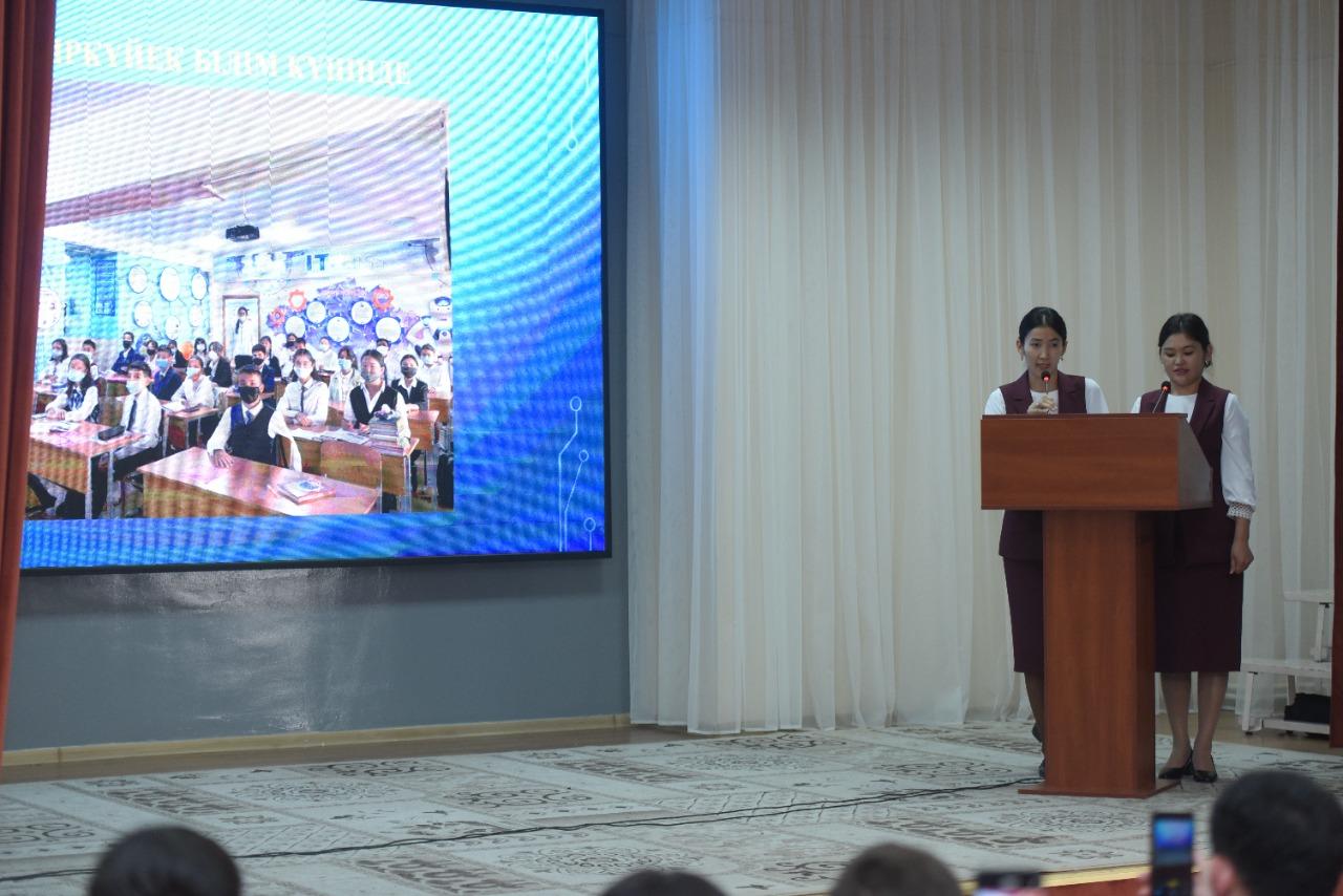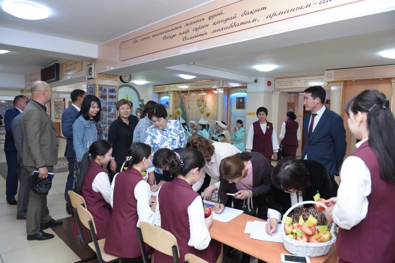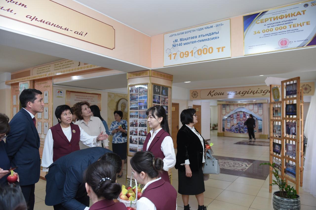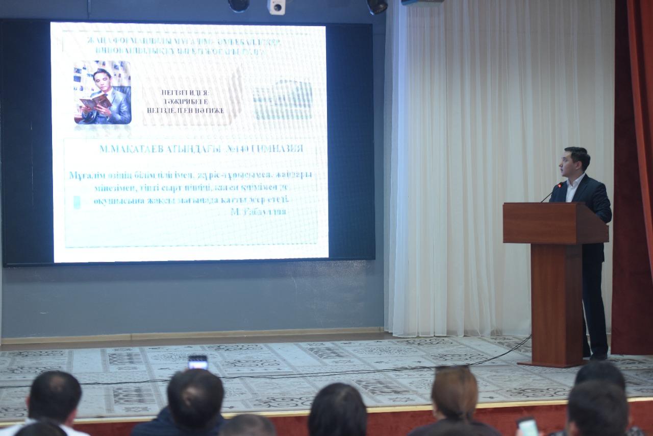 06. 04. 2022 жыл. Республикалық семинар. Республика көлеміндегі іс-шараны өткізу қаламыздағы М. Мақатаев атындағы №140 гимназияға жүктелген. “Тойдың болғанынан боладысы қызық” – дегендей, жауапкершілікті сезінген мектеп ұжымы ә дегеннен дайындықты бастап кетті. “Басқару менеджменті: Педагогикалық әдеп қағидаларын ұстана отырып жұмыс жүргізудің нәтижелілігі” тақырыбындағы семинарға келген қонақтарды мектеп оркестрмен қарсы алды. Тамылжыта түрлі күйде қалықтаған аспаптар үні келген жанның жүрегіне шоқ тастады-ау, сүйсіне тыңдап тұрған көпшілікке қарап-ақ марқаясың. Сағат 9.00-дан тіркеу жұмыстары басталып, көңіл-күйдің белгілері жазылған алмалар қонақтарымызға үлестірілді. Ары қарай мектебіміздің оқушылары мектеп ішімен толықтай таныстырып шықты. Кабинеттерге, мектеп қабырғасындағы стендтерге тоқталып, ондағы жазылған әрбір сөздің астарына үңілді. Сағат 11.00-де мәжіліс залында «Пленарлық отырыс» басталып, гимназия директоры Сәния Өскенбайқызы мен директордың оқу ісі жөніндегі орынбасары Темурбаева Сафура Сәлімбайқызы сөз сөйледі. Республиканың түкпір-түкпірінен келген ұстаздарымызға таныстырылым жасап, мектептің тыныс-тіршілігі туралы ой өрбітті.