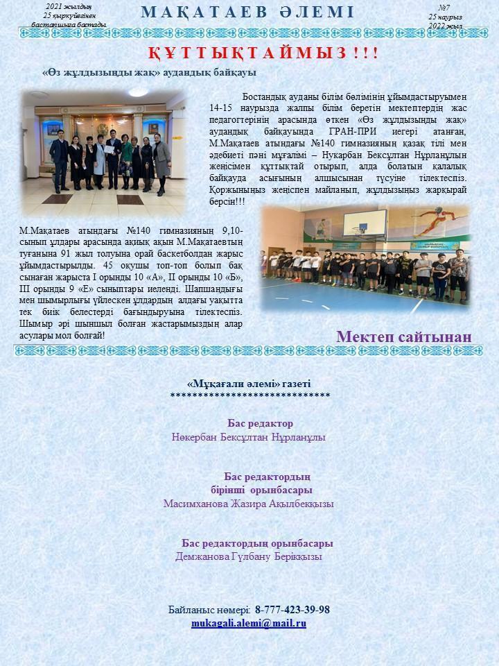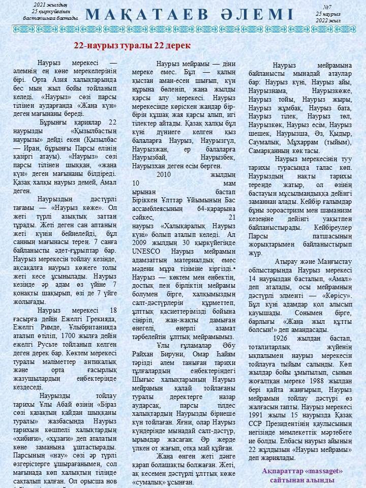 » МАҚАТАЕВ ӘЛЕМІ 7-САНЫ