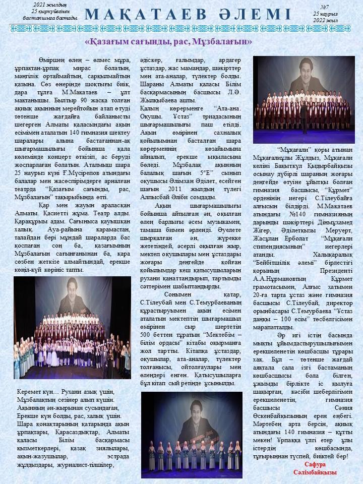 "Мақатаев әлемі" газетінің 2-саны жарық көрді