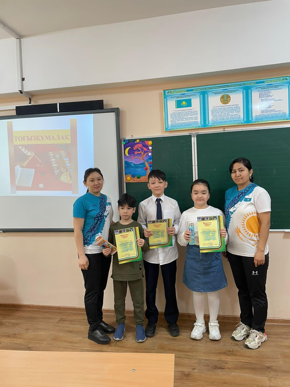 Гимназиямызда 3, 4, 5-сынып оқушылары арасында ақиық ақын Мұқағали Мақатаевтың туғанына 91 жыл толуына орай тоғызқұмалақтан жарыс ұйымдастырылды. Аталмыш жарыстан ІІІ орынды Маханов Дарын, ІІ орынды Нұрбай Айша, І орынды Келербек Бексұлтан иеленді. Логика мен есепке сүйенетін, ойлану мен батылдықты талап ететін тоғызқұмалақтан алар тоғыздарыңыз көбейе берсін. Өмір жолдарыңызда септігі тиер серік болсын. Сіздерге даналық пен даралық тілейміз.