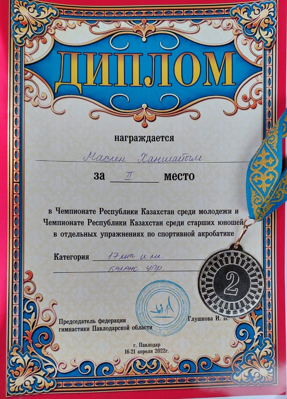 Жастар арасындағы Қазақстан Республикасының чемпионатында спорттық акробат бойынша жекелеген жаттығулар бойынша ІІ орын алған Мавлен Ханшайымды жеңісімен құттықтаймыз! Биіктерді бағындыра бер, Ханшайым. Сәттілік серігің болсын!