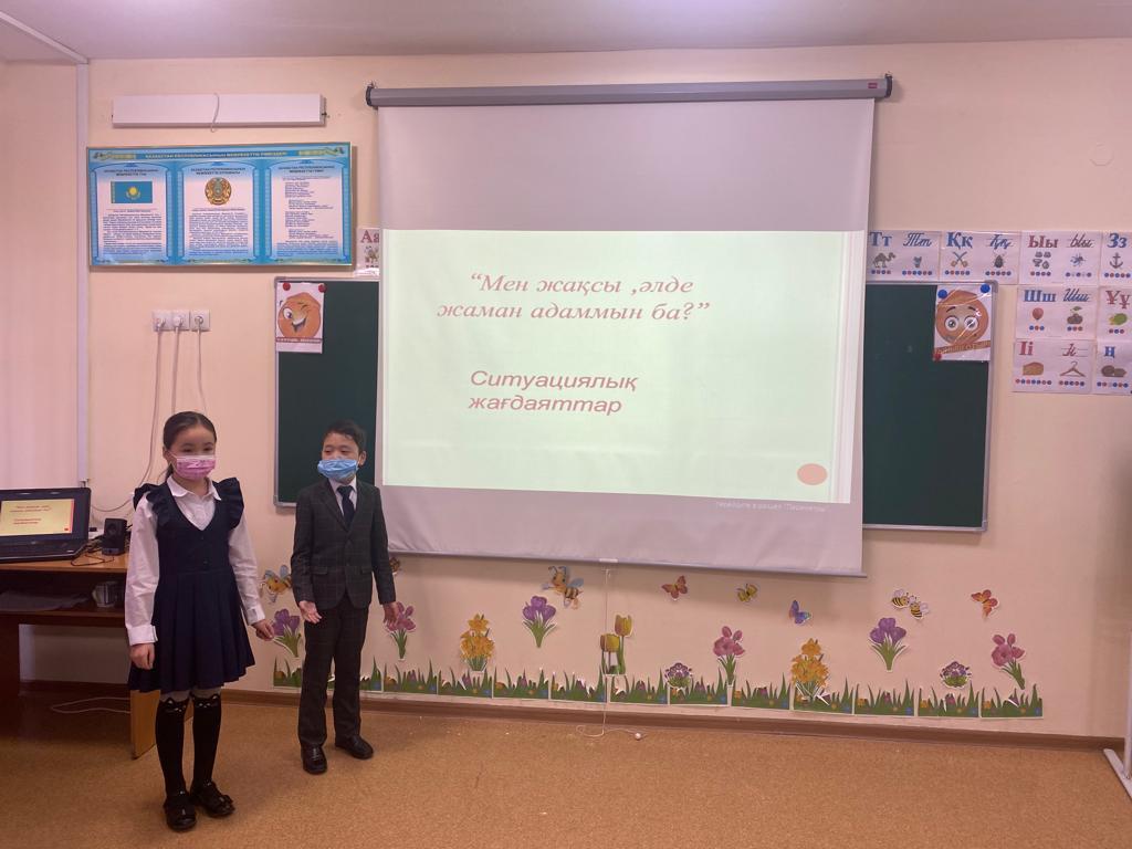 Гимназиямызда 28.02 күні 1-11 сынып аралығында «Адам болам десеңіз...» атты тақырыпта бірыңғай сынып сағаттары өткізілді. Әсіресе бастауыш сынып оқушылары жарыса жырдан шашу шашса, орта буын оқушылары «адамгершілік» туралы мақал-мәтел айтып жарысқа түсті. Ал, жоғарғы сыныптар арасында «жақсы адам болу оңай ма?» атты дебат ұйымдастырылып, жақсы мінезді қалай қалыптастыруға болады деген сұраққа жауап іздеді! Түрлі ситуациялық сұрақтарға жауап беріп, дөңгелек үстелде ойларын талқыға салды.