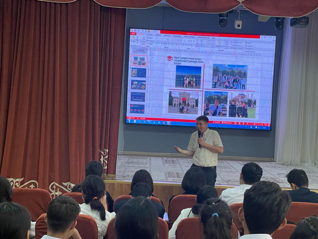 03 октябрь 2022 0 1 2 3 4 5 Кәсіптік бағдар беру Кәсіптік бағдар беру мақсатында гимназияның 10-11 - сыныптарына жоғары оқу орындарын таныстыру, мамандық таңдау, халықаралық бағдарламалардың мүмкіндіктері сынды тақырыптар аясында жүргізілген тренинг жұмыстары. Осы беттің QR-коды:QR-код этой страницы: