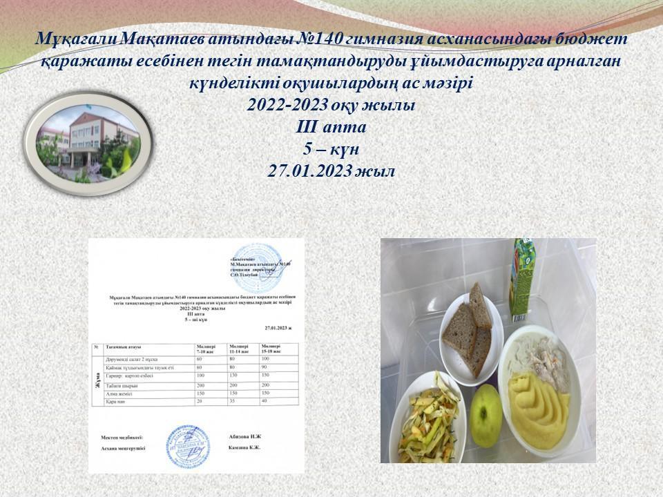 » 27.01.2023 жылғы ас мәзірі