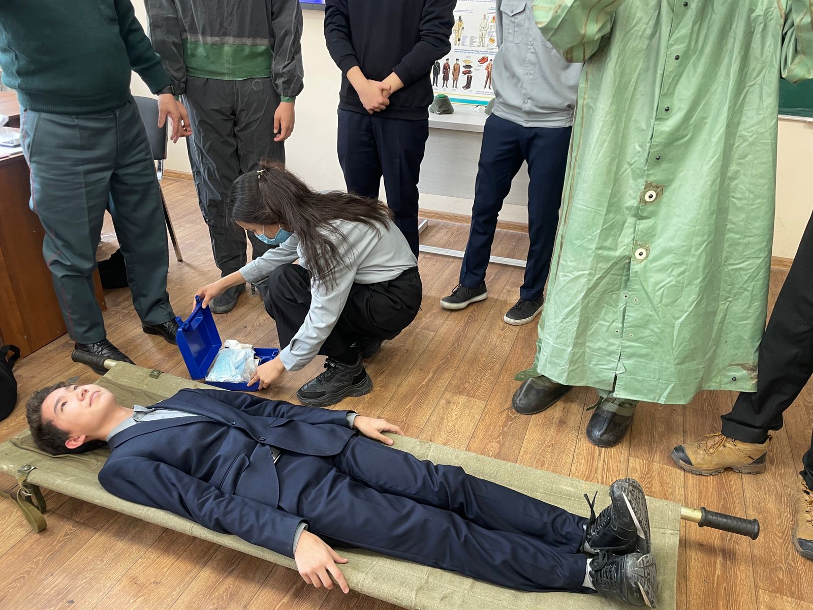 Бүгін 10-сыныптар арасында АӘДТ пәні мұғалімі Ержан Сәрсенқожаұлы "Төтенше жағдай кезіндегі іс-әрекеттер" тақырыбында балаларға түсіндірме жұмыстарын жүргізді. Төтенше жағдай дегеніміз не, қандай уақытта болуы мүмкін, қандай іс-әрекеттер орындалуы керек деген сұрақтарға жауап беріп, практикалық жұмыстар жүргізді.