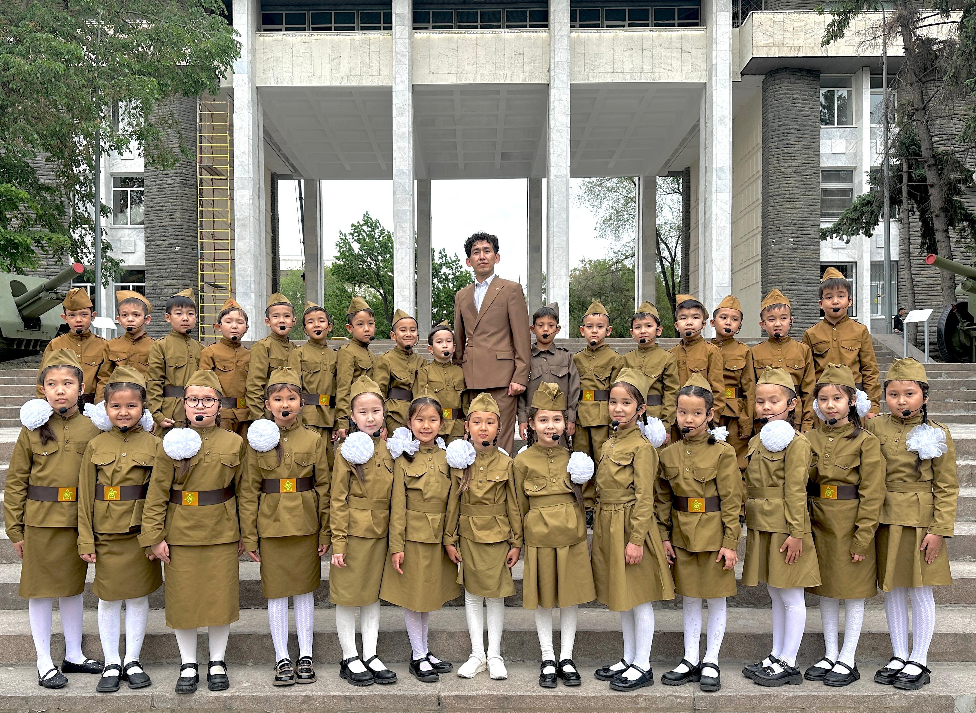 “Сұңқар” балалар хоры Ұлы Жеңістің 80 жылдығына орай «Ән сал, Сарбаз» әнін , батырлар рухына тағзым етіп, 28 Панфиловшылар паркінде орындады. Хор жетекшісі: Берекет Теміртайұлы.