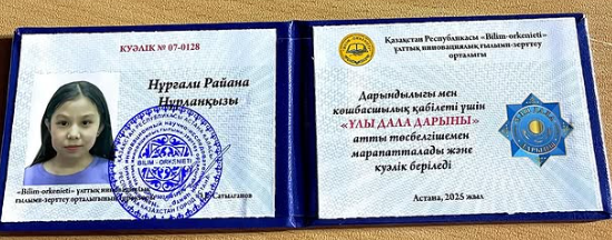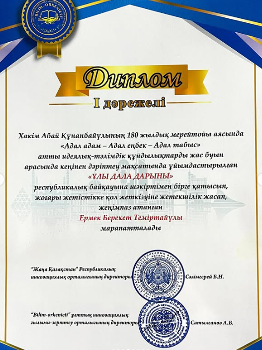 4 «Е» сынып оқушысы Нұрғали Райана және 3 «Ж» сынып оқушысы Мерей Нұрай қатысып - « 1-орын иегері атанды және “Дарынды оқушы” төс белгісімен марапатталды!!!