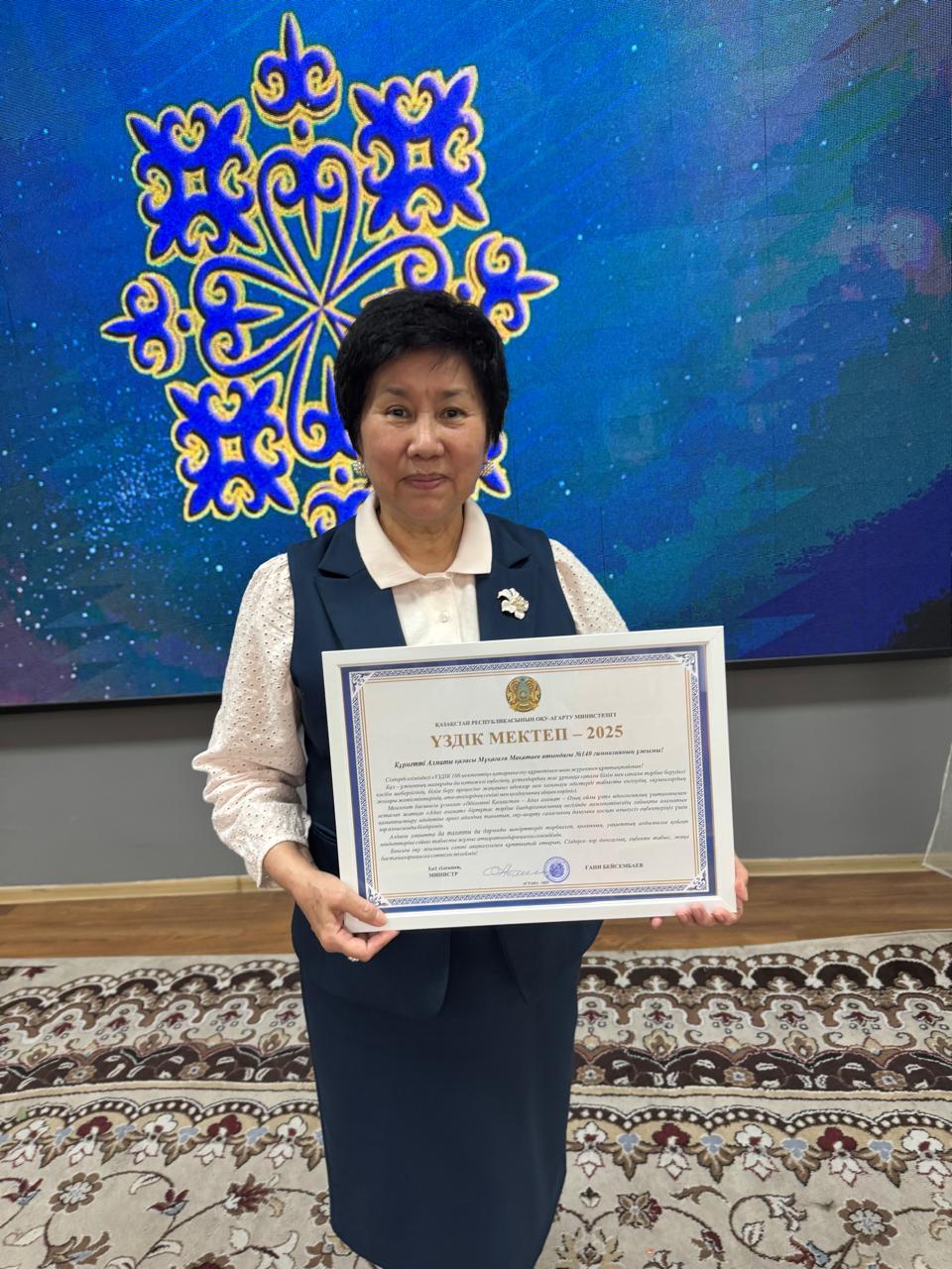 Сіздерді еліміздегі "ҮЗДІК 100 мектептің" қатарына ену құрметімен шын жүректен құттықтаймыз!