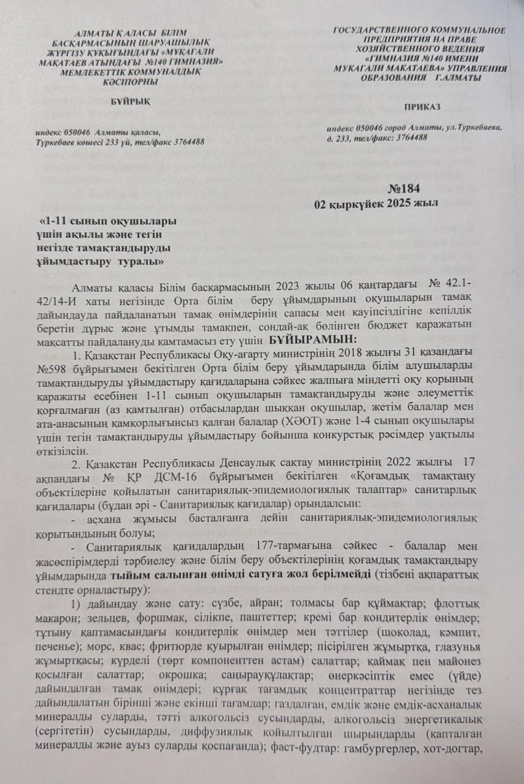 02 сентябрь 2025 0 1 2 3 4 5 Тамақтануды ұйымдастыру туралы бұйрық Осы беттің QR-коды:QR-код этой страницы: