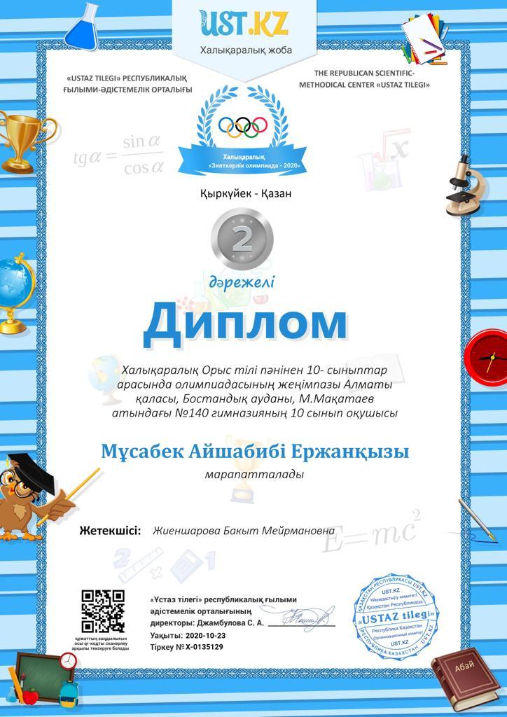 23 октябрь 2020 0 1 2 3 4 5 "USTAZ TILEGI" республикалық ғылыми-әдістемелік орталығы Осы беттің QR-коды:QR-код этой страницы: