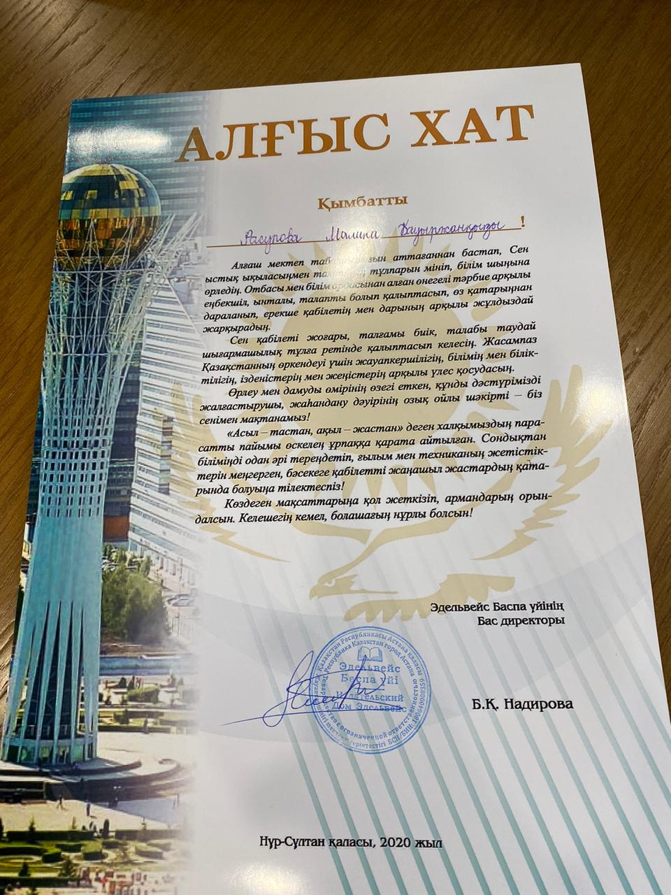 » Алғыс хат