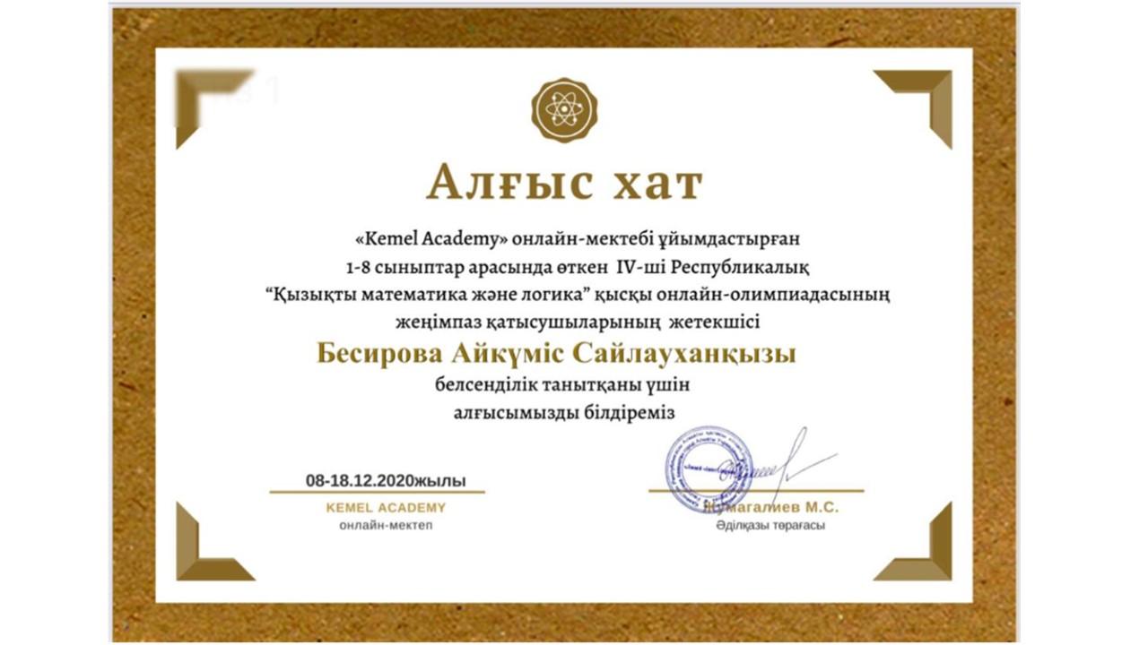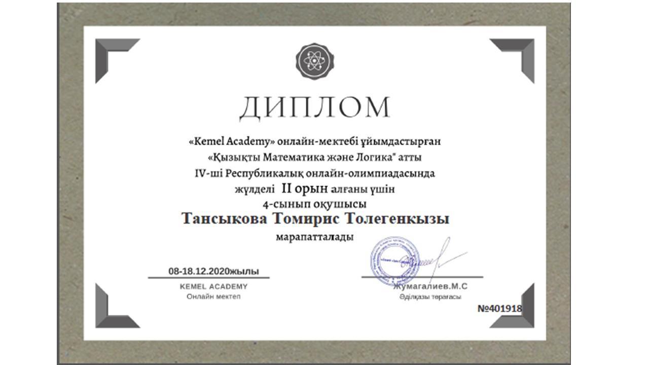 22 декабрь 2020 0 1 2 3 4 5 "Kemel Academy" онлайн-мектебі Шәкірттеріміз "Kemel Academy" онлайн-мектебі ұйымдастырған "Қызықты Математика және Логика" атты IV-ші Республикалық онлайн-олимпиадасында жүлделі орындардын көрінді. Құттықтаймыз!!! Осы беттің QR-коды:QR-код этой страницы: