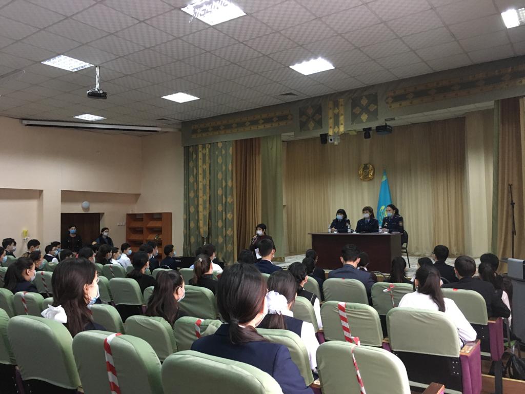 12.02.2021 күні түске дейін М.Мақатаев атындағы №140 гимназияның 9-сынып оқушыларына Бостандық ауданы полиция бөлімі АПБ ЖПК бастығы полиция подполковнигі Т.С.Сарқытқанова, аға инспекторы полиция майоры А.Ж.Кокилова, аға инспекторы полиция капитаны Ш.Ж.Молдабергенова «Кәмелетке толмағандар арасындағы құқық бұзушылық пен қылмысқа жол бермеу», «Суицид», «Жыныстық бостандыққа және жыныстық қол сұғылмаушылыққа қарсы өзге де қылмыстар» тықырыбында дәрістер оқып, түсіндірме жұмыстарын жүргізді. 9 сыныптардың барлық оқушылары түгелдей қамтылды. Мектеп директоры, әкімшілігі, сынып жетекшілері, психолог, әлеуметтік педагогтер де қатысты. Бұл жиналыс офлайн форматта өтті. Жиналыс барысында оқушылар полиция қызметкерлеріне сұрақ қойып, сұрақтарына нақты жауап алды.