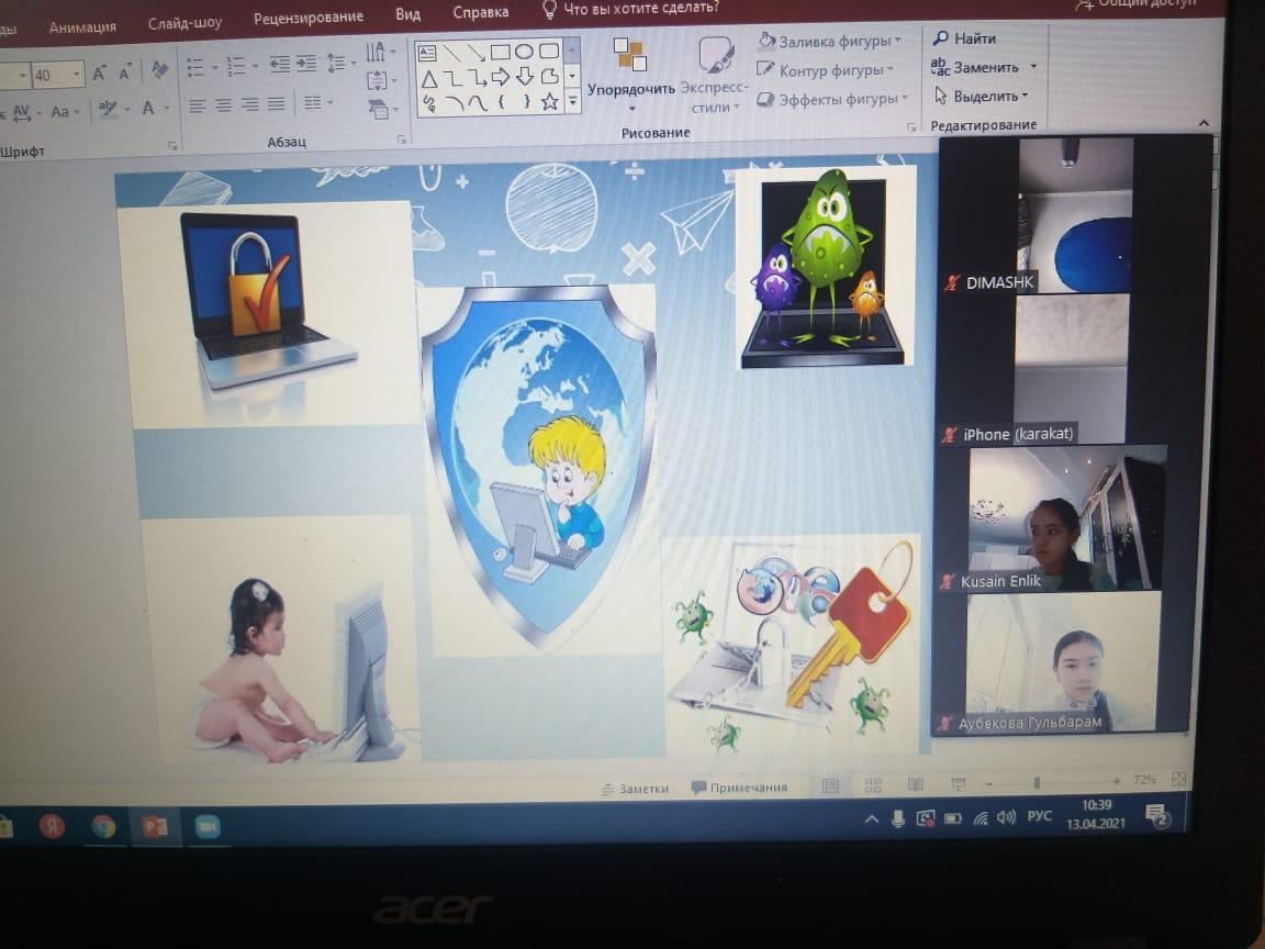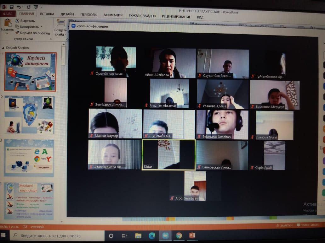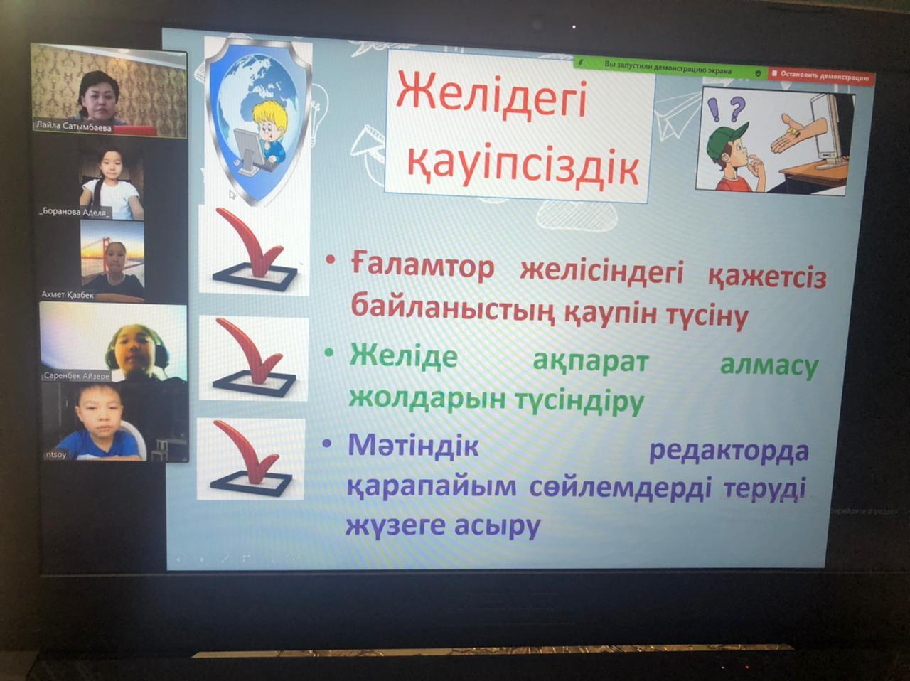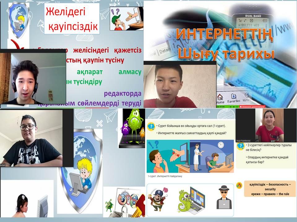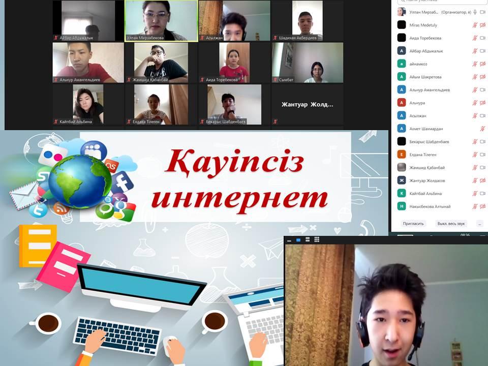 13-сәуір күні 1-10 сынып оқушылары үшін «Қауіпсіз Интернет» тақырыбында тәрбие сағаты өтті. Тәрбие сағаты барысында оқушылар өз мүмкіншіліктерін түрлі кезеңдерде берілген тапсырмаларды орындай отырып, интернеттің пайдасы мен зияны туралы түсінік қалыптастырды. Берілген сұрақтарға нақты жауап беру жалпы компьютердің адам ағзасына қандай зиян келтіретінін түсінді. Тәрбие сағаты барысында оқушыларға интернет туралы толық мәліметтер берілді. Интернеттің пайдасы мен зияны туралы әңгіме өрбіді. Оқушылар сынып сағатына белсене атсалысып, мұғалім берген тапсырмаларды орындап жағдаяттарға жауап берді.