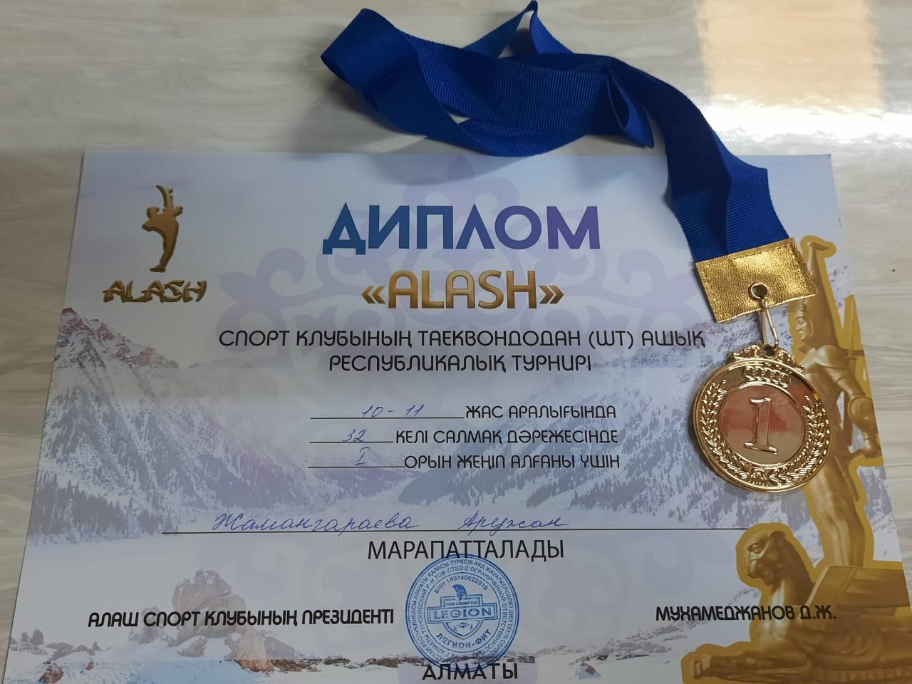 Алаш спорт клубы ұйымдастырған, таеквондодан ашық Республикалық турнирде, 10-11 жас аралығындағы балалар арасында, 32кг салмақ дәрежесінде өнер көрсетіп, жүлделі І орынды жеңіп алған, М.Мақатаев атындағы №140 гимназиямыздың мақтанышы – Жамангараева Аружанды, жеңісімен құттықтап, алдағы шығармашылығы мен өмірлік жолына сәттілік тілейміз!