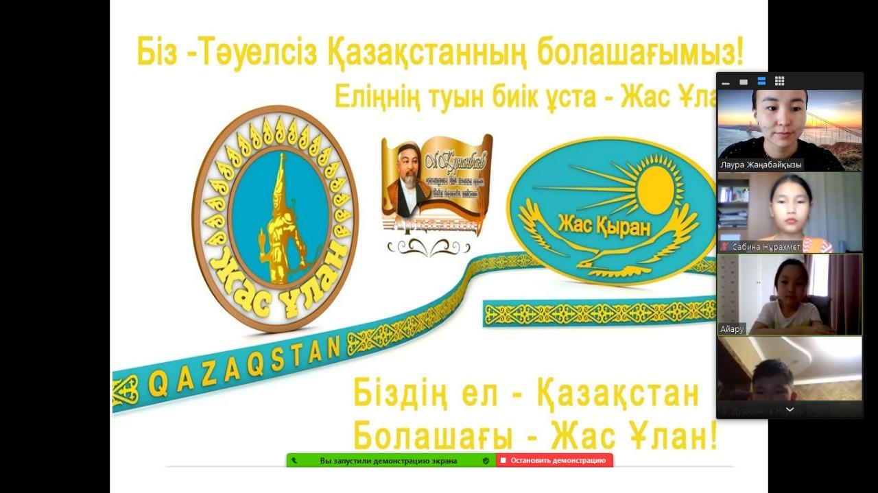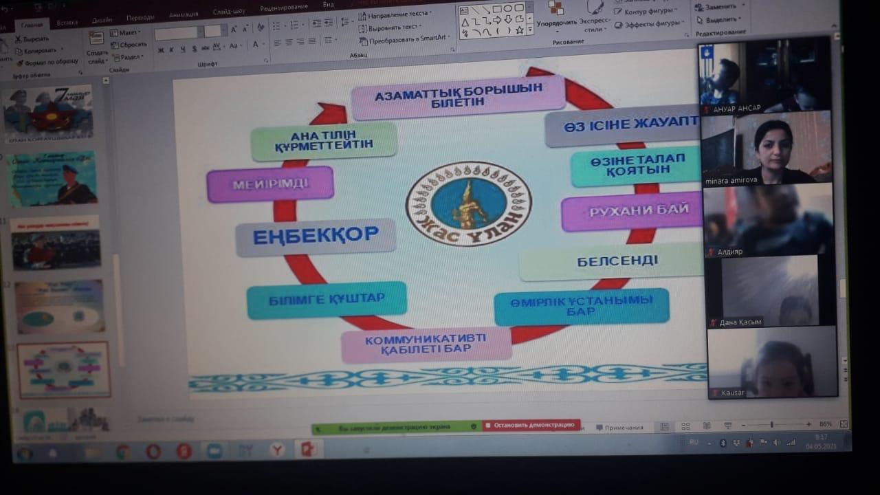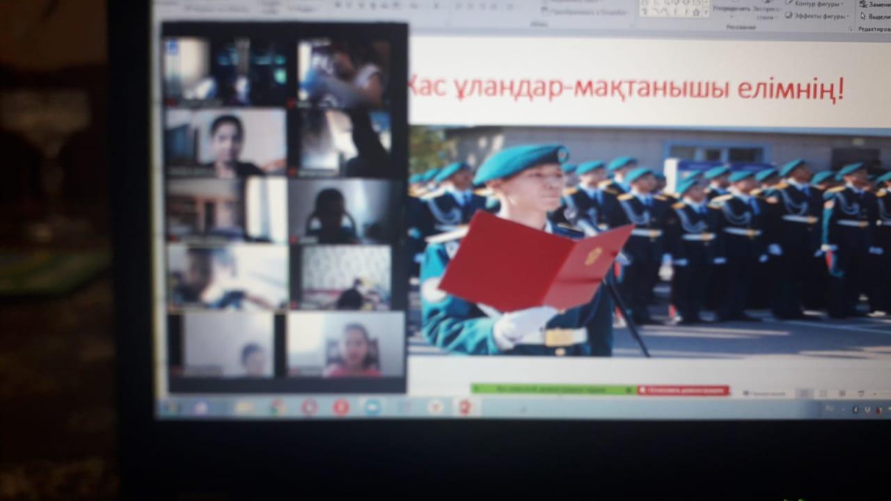 06.05.2021ж. күні 1-11 сыныптар арасында, оқушыларға сарбаздар, Отан қорғаушылар жайында әңгімелеп беру, дүниетанымдарын кеңейту, ізденімпаздыққа, шығармашылыққа баулу мақсатында, «Жас ұландар – мақтанышы елімнің!» атты сынып жетекшілерінің жетекшілігімен тәрбие сағаттары өткізілді. Балаларға 7 – мамыр Отан қорғаушылар күні мерекесін сезіндіре отырып, өзара құттықтауларын жеткіздік. Ұлы отан соғысының батырларының ерлік істеріне тағзым етуге батыл да ержүрек болуға, елін, жерін жаудан қорғай білуге, халқының потриоты болуға баулыдық.