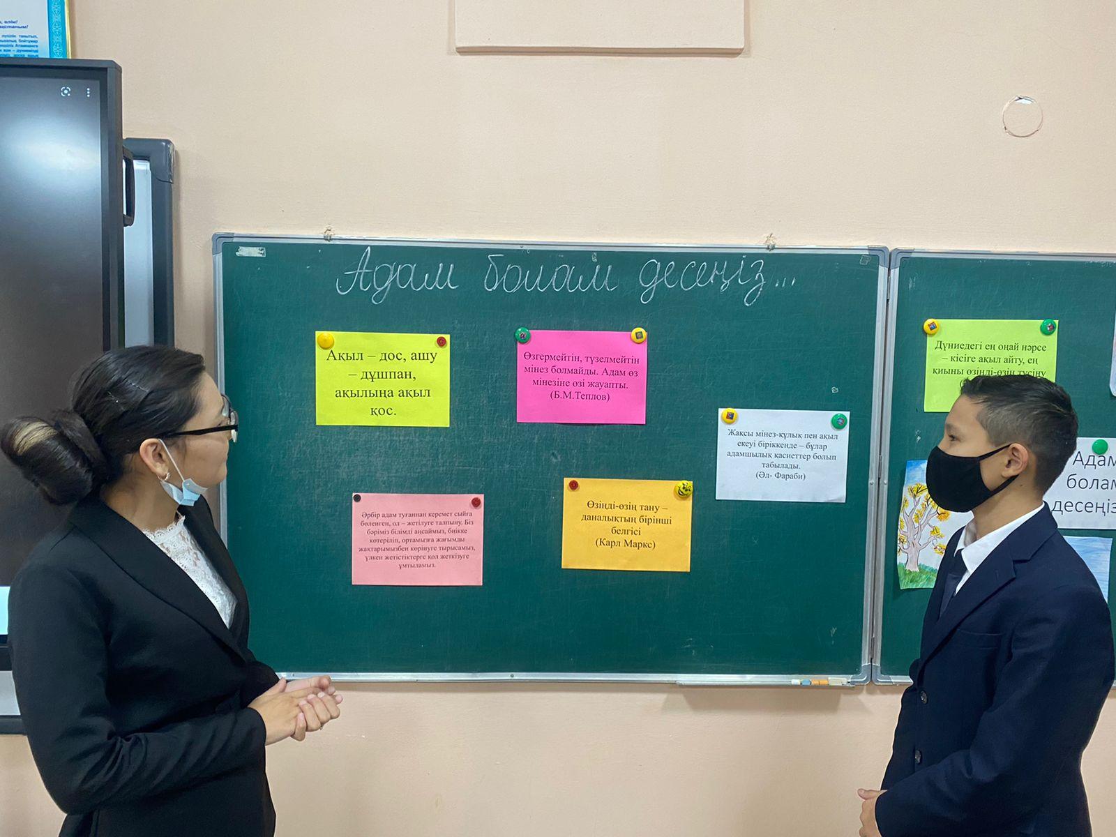 Гимназиямызда 20.11 күні 1-11 сынып аралығында «Адам болам десеңіз...» атты тақырыпта Республикалық бірыңғай сынып сағаттары өткізілді. Әсіресе бастауыш сынып оқушылары жарыса жырдан шашу шашса, орта буын оқушылары «адамгершілік» туралы мақал-мәтел айтып жарысқа түсті. Ал, жоғарғы сыныптар арасында «жақсы адам болу оңай ма?» атты дебат ұйымдастырылып, жақсы мінезді қалай қалыптастыруға болады деген сұраққа жауап іздеді! Түрлі ситуациялық сұрақтарға жауап беріп, дөңгелек үстелде ойларын талқыға салды.