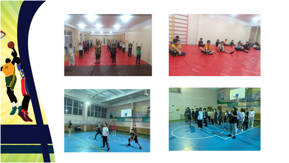 Сонымен қатар гимназиямызда түрлі үйірмелер бірінші күннен-ақ қызу жұмыстарын бастап кеткен. Мәселен:шахмат, күрес, теннис үстелі, баскетбол, волейбол, тоғызқұмалақ ойындарына апта сайын оқушылар тарапынан қызығушылықтар артып келеді. Гимназия шәкірттерін шыдамды, төзімді болумен қатар, алға қойған негізгі мақсатымыз кез-келген ауруларға төтеп бере алатын иммунды жүйелері мықты оқушыларды шығару. Дене жаттығуларымен айналысқан оқушыларымыз дұрыс тамақтану мен уақытты тиімді пайдаланудың ережелерін бұлжытпай орындауға тырысады.