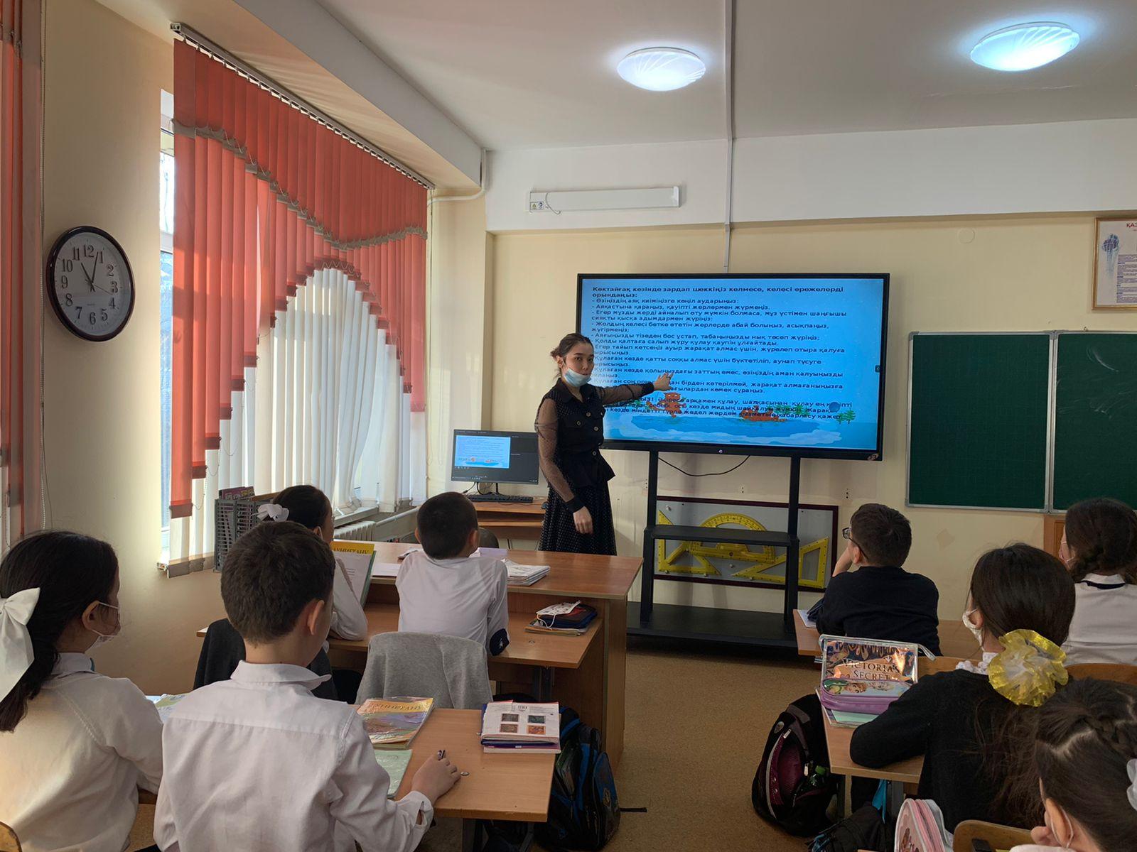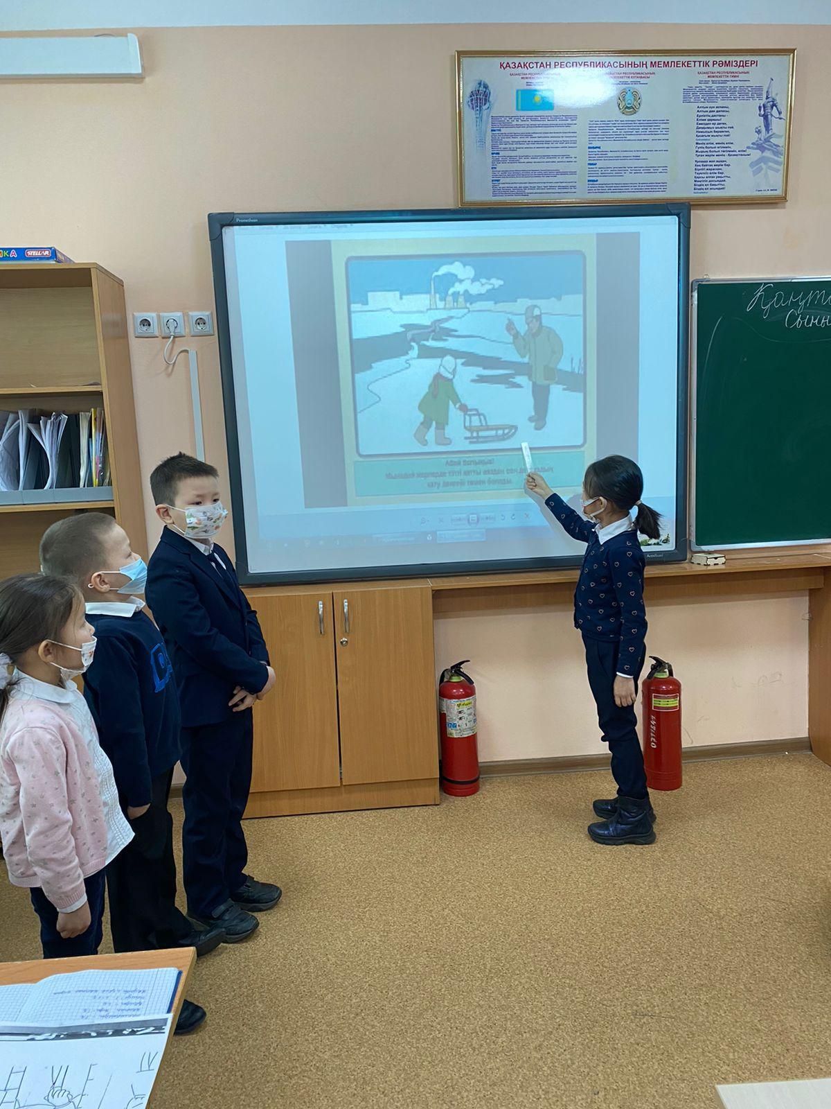 Мұз үстіндегі сақтық шараларын ұстану және төтенше жағдай туғанда өзгеге алғашқы көмек бере алу ережелері таныстырылды; қысқы уақыттаға табиғи апаттарға дайын болып, алдын алу әрекеттері түсіндірілді.
