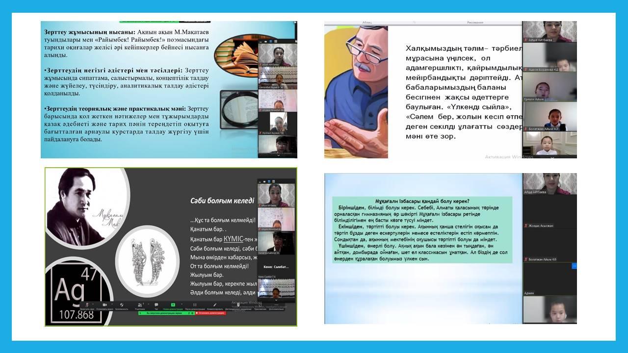 «Мұқағали – мәңгілік жыр» айлығы аясында гимназияда 07.02.2022ж. күні “Жарастық пен келісімнің жаршысы” атты ғылыми жобалар байқауы ұйымдастырылды. Оқушылар ақын шығармашылығын жас ерекшеліктеріне қарай берілген пәндермен ұштастыра отырып, толыққанды дайындықпен ғылыми жобаларын жоғары деңгейде қорғап шықты. Нәтижесі айлықтың қорытынды кешінде айтылып, марапатталады.