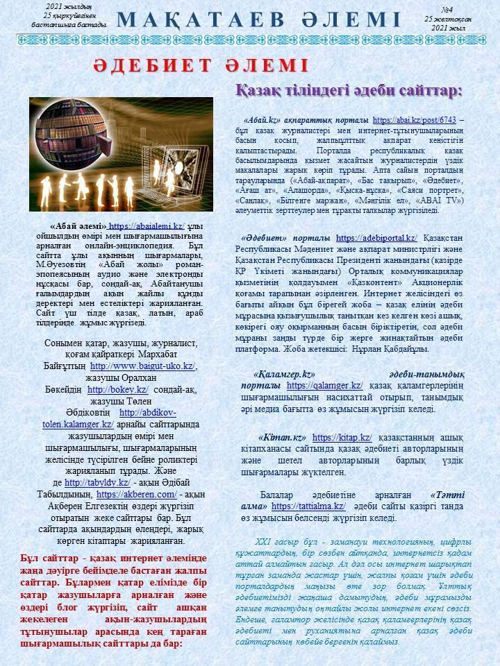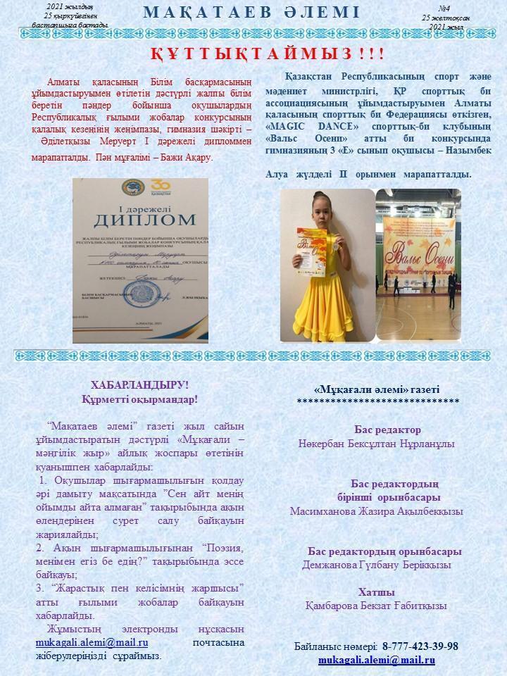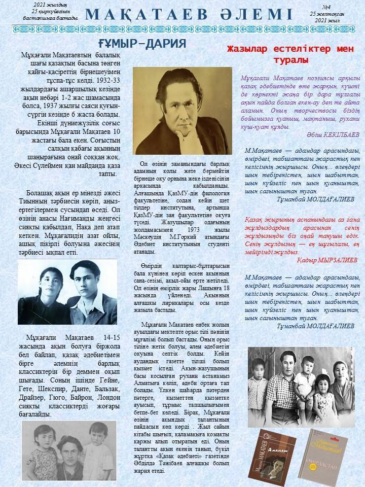 25 декабрь 2021 100 1 2 3 4 5 "Мақатаев әлемі" газетінің 4-саны Осы беттің QR-коды:QR-код этой страницы: