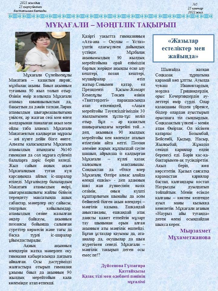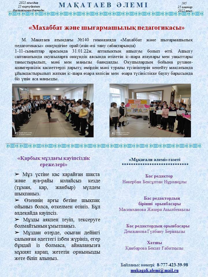 25 январь 2022 100 1 2 3 4 5 "Мақатаев әлемі" газетінің 5-саны Осы беттің QR-коды:QR-код этой страницы: