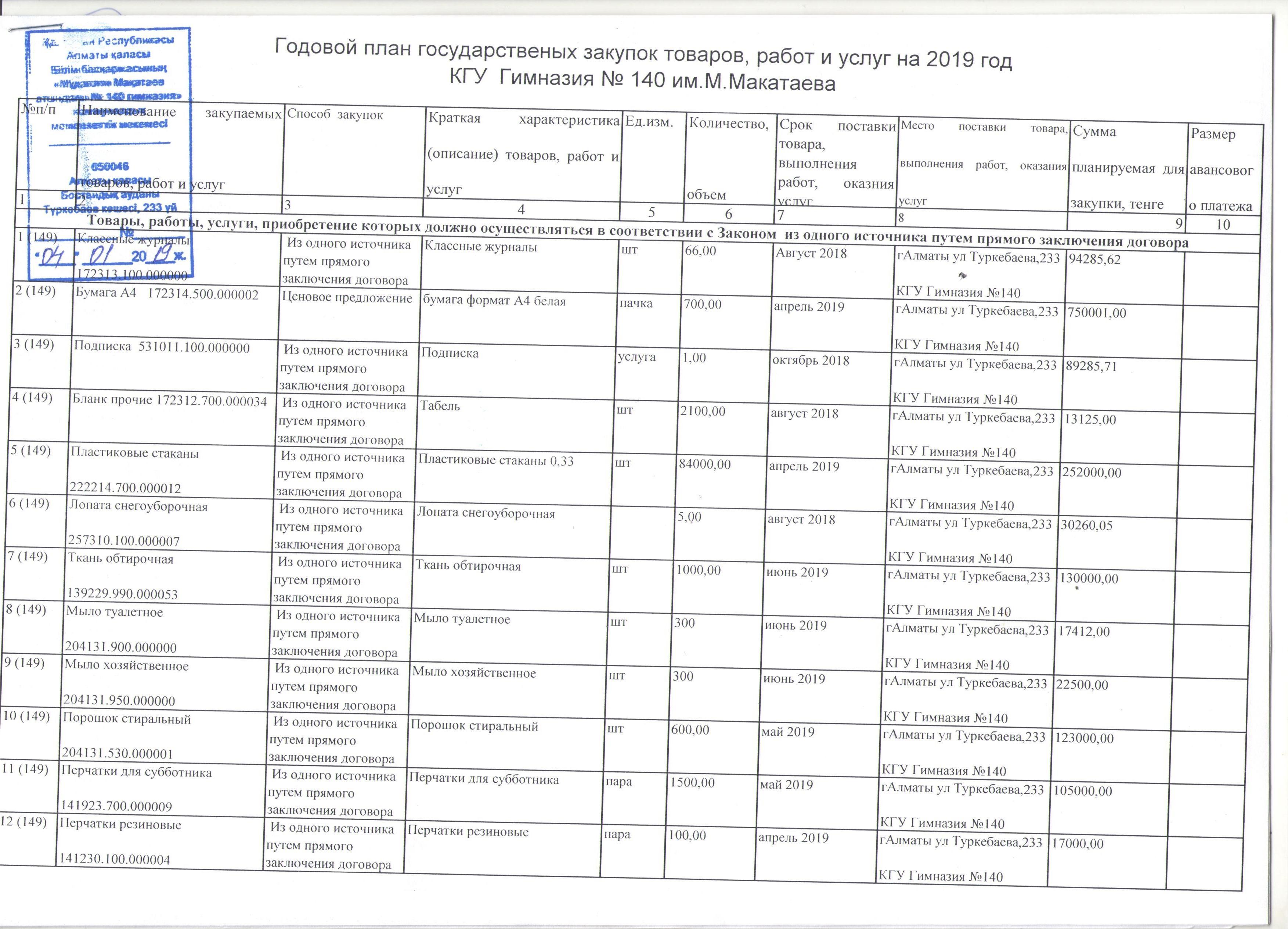 Мемлекеттік сатып алу жоспары