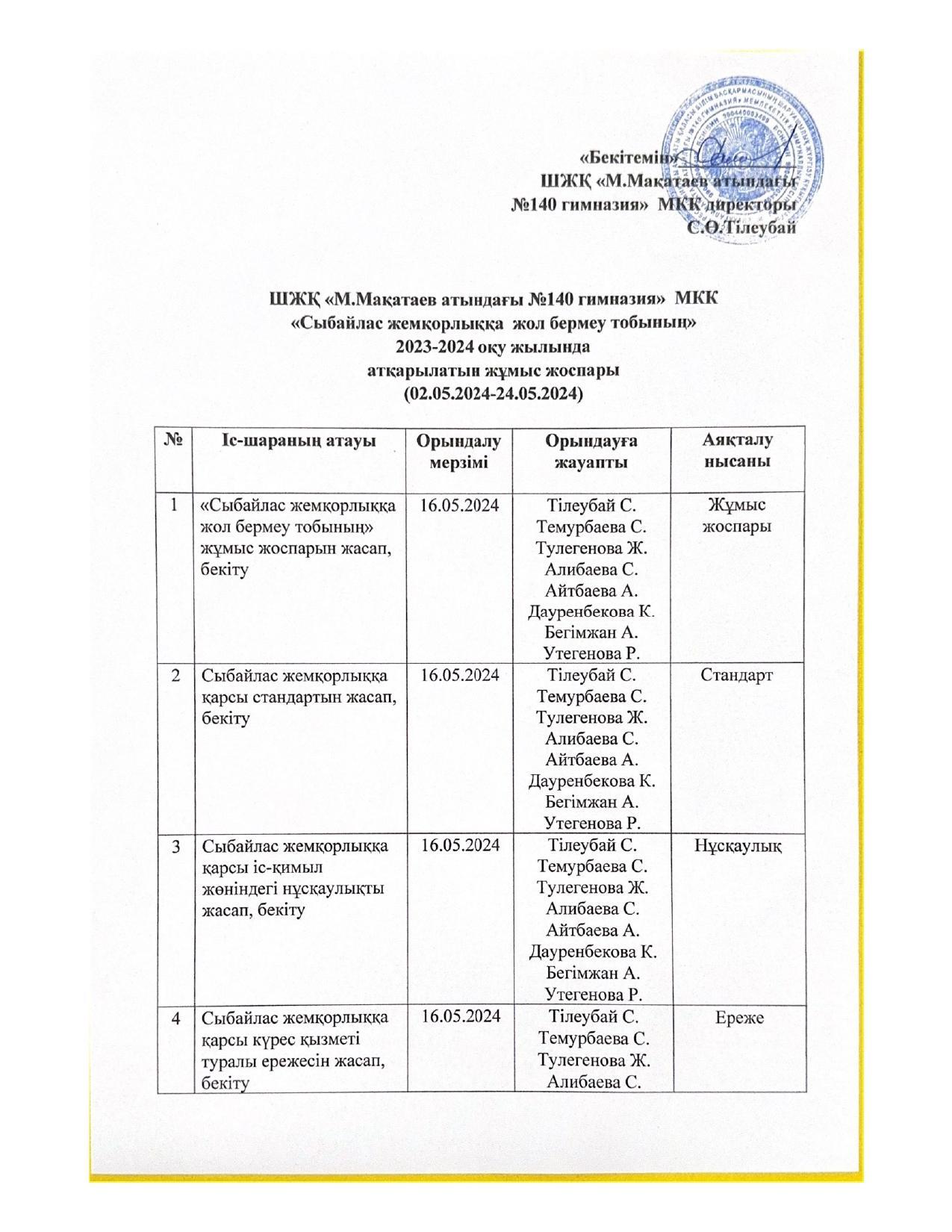 29 май 2024 0 1 2 3 4 5 Сыбайлас жемқорлыққа қарсы іс-қимыл мәселелері бойынша ішкі іс-шаралар жоспары Осы беттің QR-коды:QR-код этой страницы: