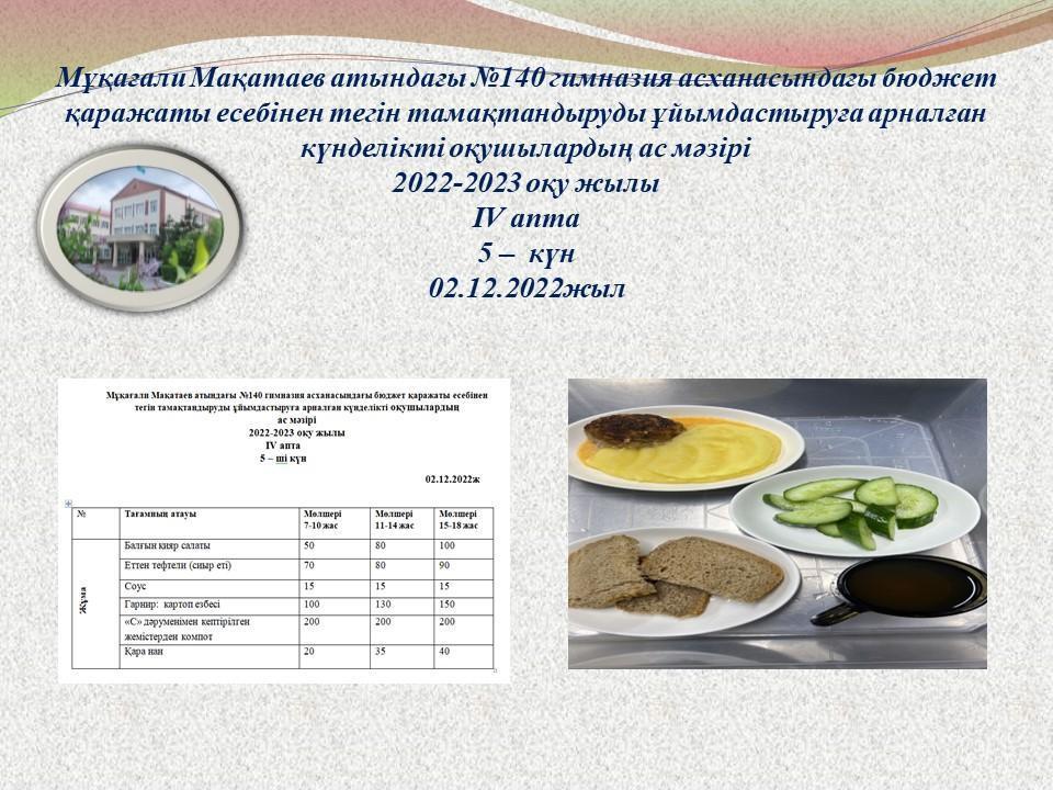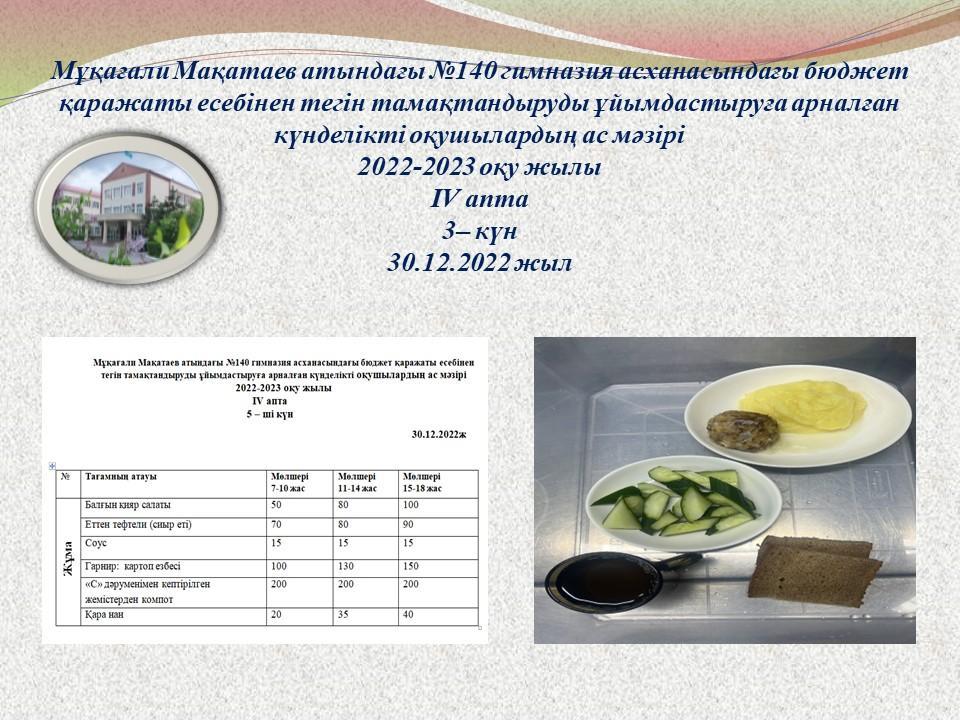 30 декабрь 2022 0 1 2 3 4 5 Желтоқсан айының күнделікті ас мәзірі Осы беттің QR-коды:QR-код этой страницы: