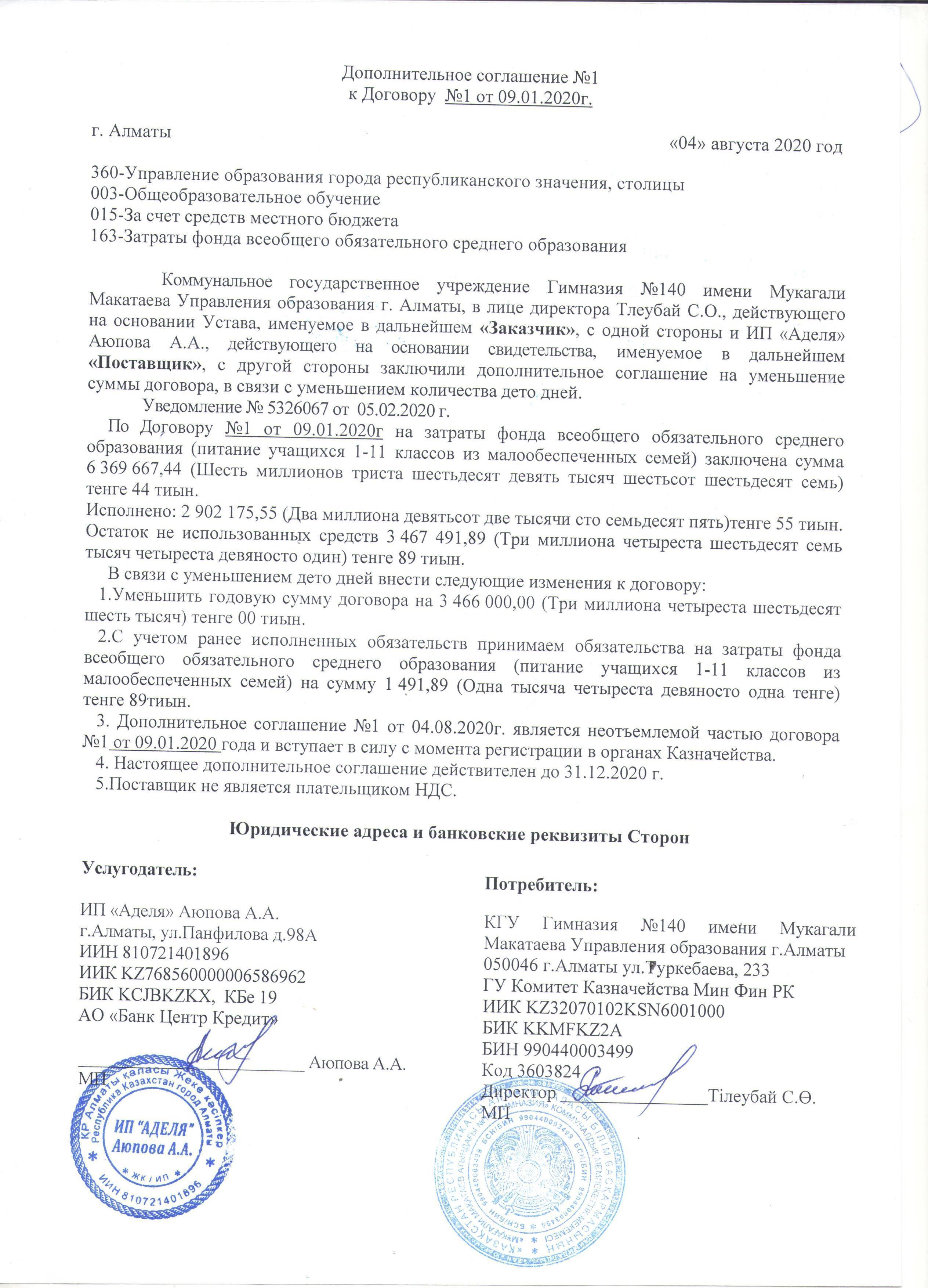 04 август 2020 0 1 2 3 4 5 Дополнительное соглашение №1 к договру №1 от 09.01.2020 г Осы беттің QR-коды:QR-код этой страницы: